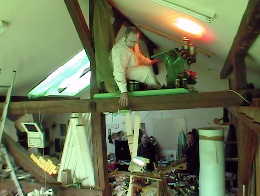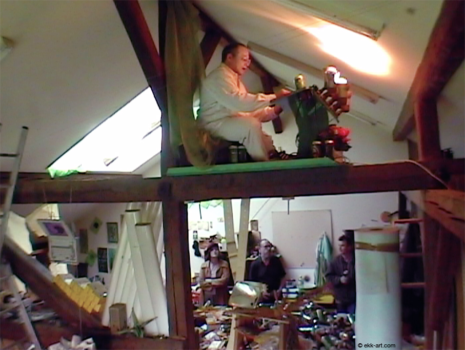 2 Stills von der Performance im Atelier von Herm. Reinfrank